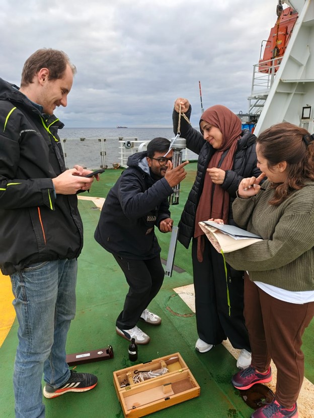 During this month-long journey, I gained hands-on experience with advanced marine research instruments, from the more sophisticated as the CTD with rosette to the more traditional as the Assmann Psychrometer. I received advanced training in oceanographic, meteorological, and climate observation techniques, actively participated in sampling and processing data from the Atlantic Ocean, and explored critical topics such as climate variability, climate change, and ocean governance. I had the unique opportunity to collaborate with leading scientists in climate change and oceanography and to exchange ideas with fellow scholars from diverse academic and cultural backgrounds.
