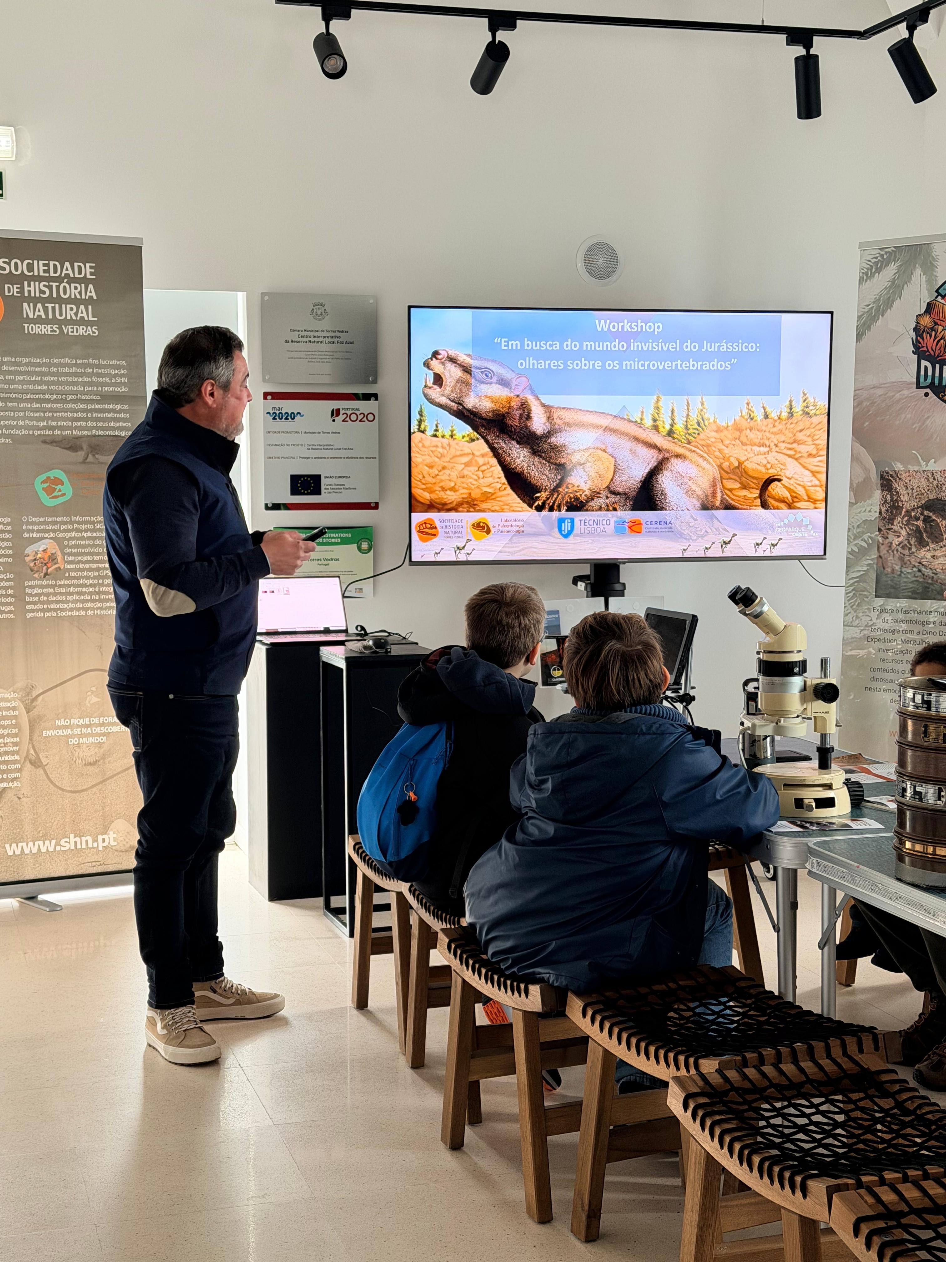 Our researcher, Ricardo Araújo, in partnership with the Natural History Society, organized a workshop entitled "Looking into the invisible world: in search of microvertebrates from the Jurassic." It took place on January 3rd 2026, in Torres Vedras and allowed adult and children enthusiasts to get a clearer idea of the ecosystems of the Jurassic period in Torres Vedras.